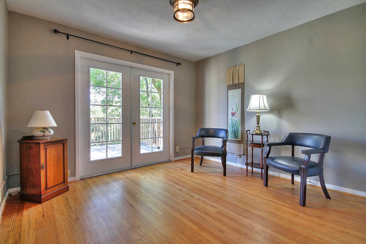 - Formal dining room with door to outdoor deck for casual dining