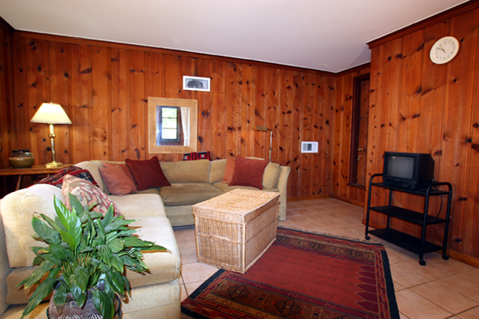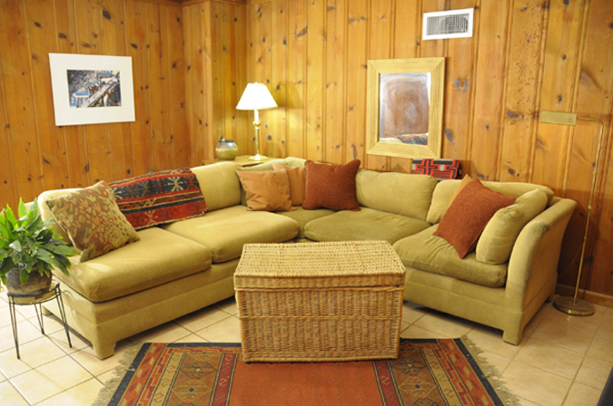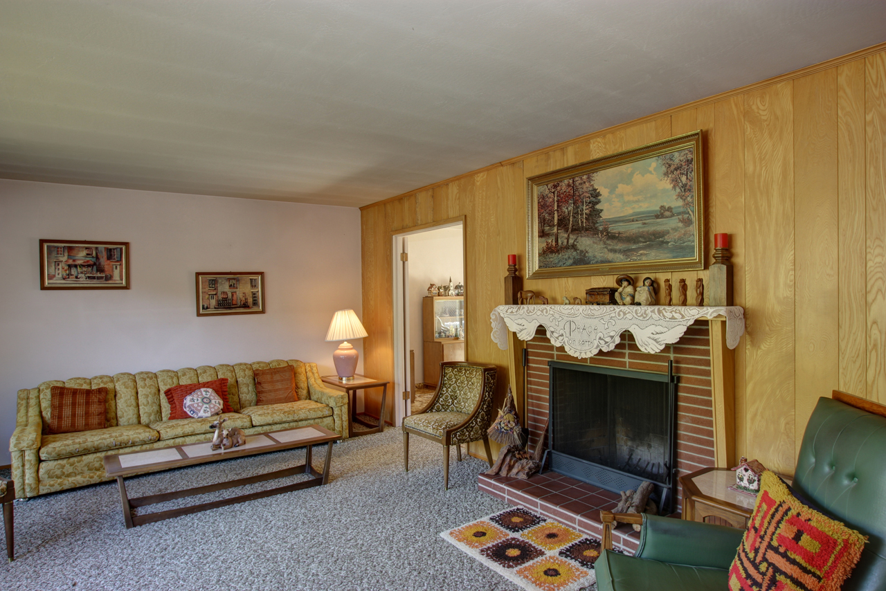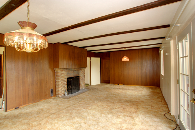 - Family/TV room with wood paneling - could be dining room