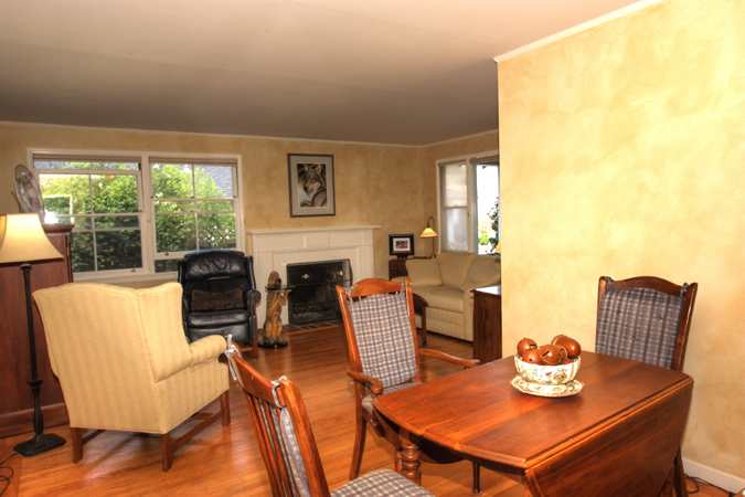 - Spacious Living room with brick fireplace and adjoining dining area