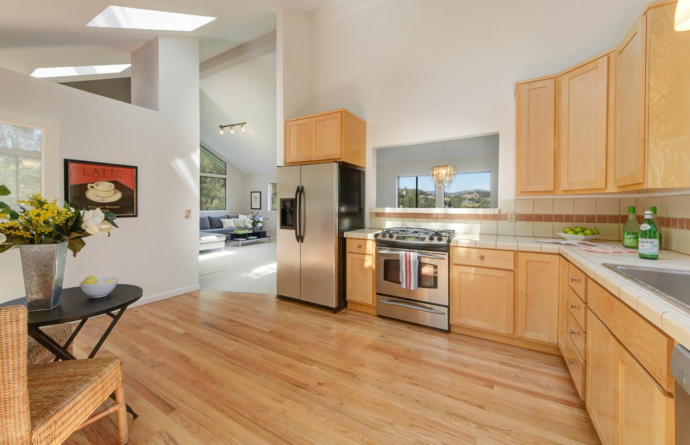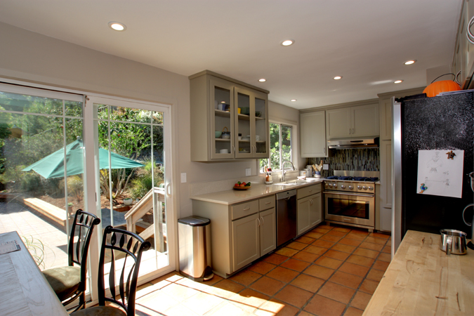 - Lovely Kitchen with gas range, skylight and Mexican paver tile floor