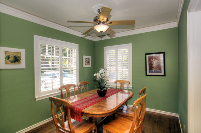 - Formal dining room with plantation shutters