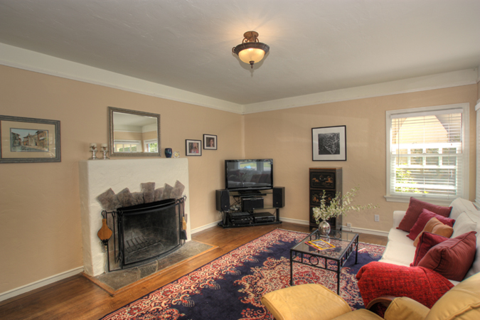 - Living Room with fabulous original tile fireplace