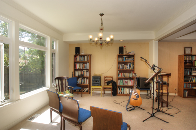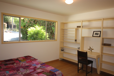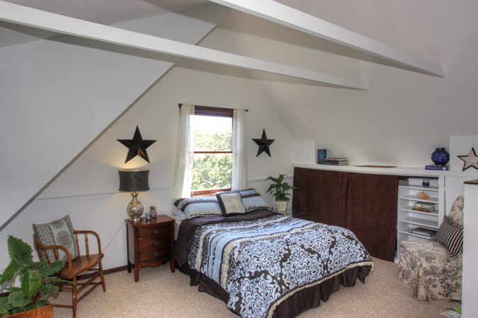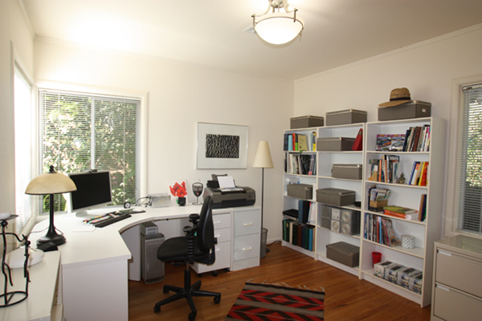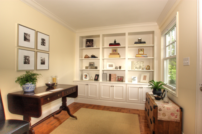 - Wonderful office/retreat upstairs with built-in bookshelves and wood floor