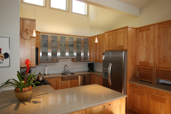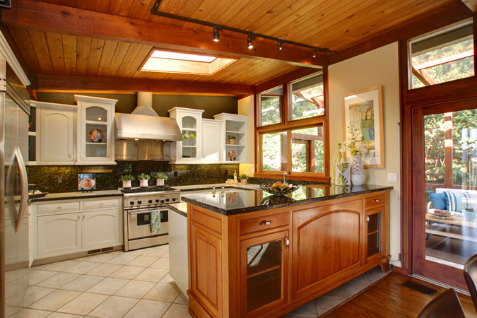 Kitchen with skylights, top-of-the line appliances, custom cabinets and pantry