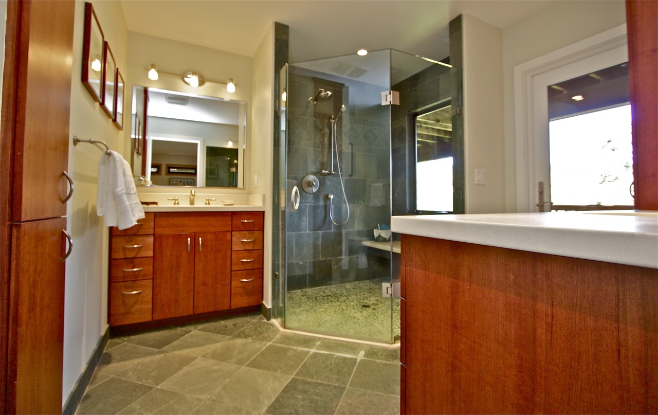 - Large Master suite with bay views and deck, master bathroom has dual vanities plus a walk-in closet