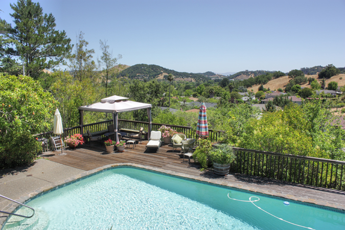 New construction in 1998, this serene ~4240 square foot home is nestled on a large lot surrounded by hills and open space, yet close to town and all amenities. The owners have doubled the outdoor living space, creating a dazzling vanishing edge swiimming pool and spa just off the handset flagstone courtyard. A versatile floor plan with 5 bedrooms and 4 bathrooms, also a separate apartment and home gym and sauna, blend indoor and outdoor living to make the Miwok estate a very special home. Offered at $2,390,000. Now PENDING