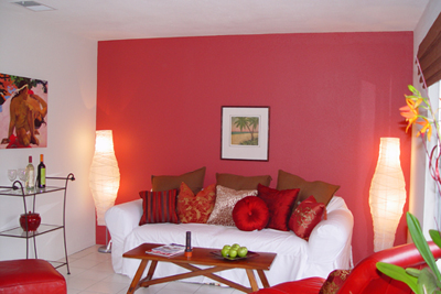 There are so many features to this house, that we'll let pictures speak instead of words; the image below shows the great living room, replete with Thai silk draperies; then check out the virtual tour which shows the apartment (at present used as an office and games room), the master suite with balcony and views, the living room and kitchen, and an external shot of the swimming pool spa, and main coutyard of the house.