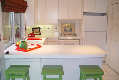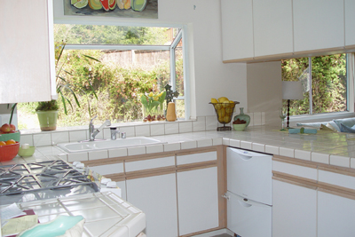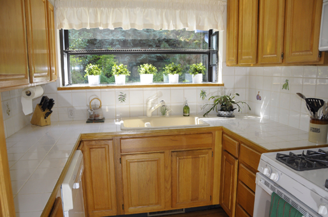 - Kitchen with double sink, greenhouse window and Jenn-Aire electric range