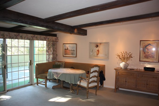 - Dining Area/Family Room with beamed ceilings and french doors to the garden