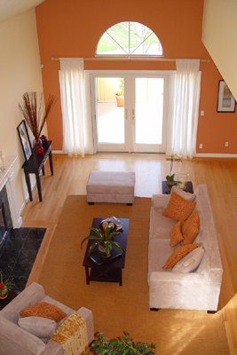 Lovely Living Room with gleaming hard wood floors and gas fireplace