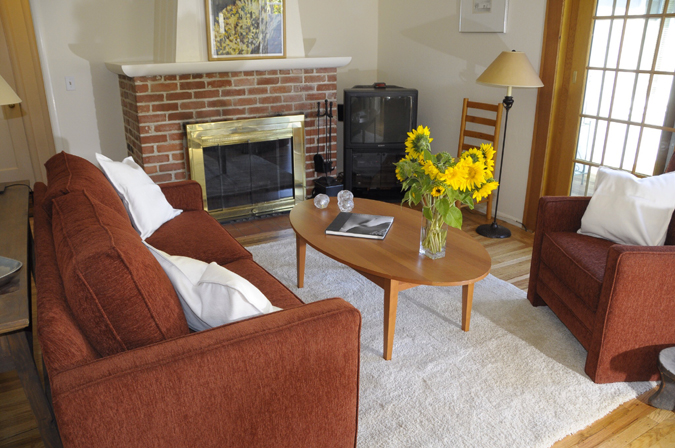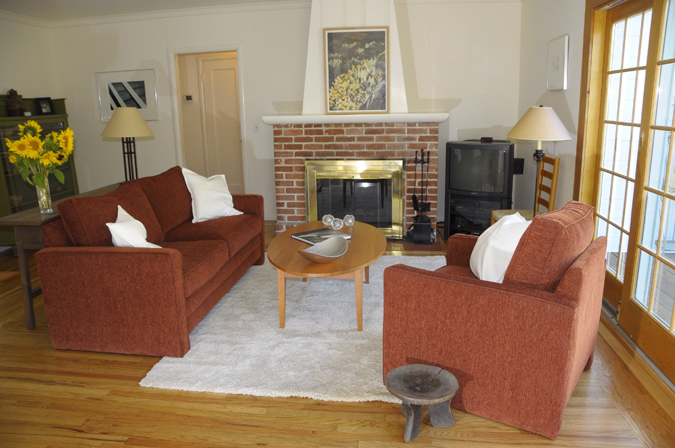 Living Room with brick fireplace