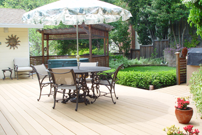 - Fabulous landscaped grounds, with lush plantings and Palm in the front. The fabulous level backyard can be seen in the pictures below, and includes a spacious lawn with childrens play area, masses of flower and vegetable gardens, a patio and hot tub.
