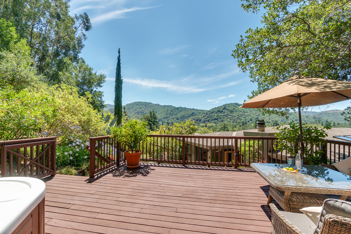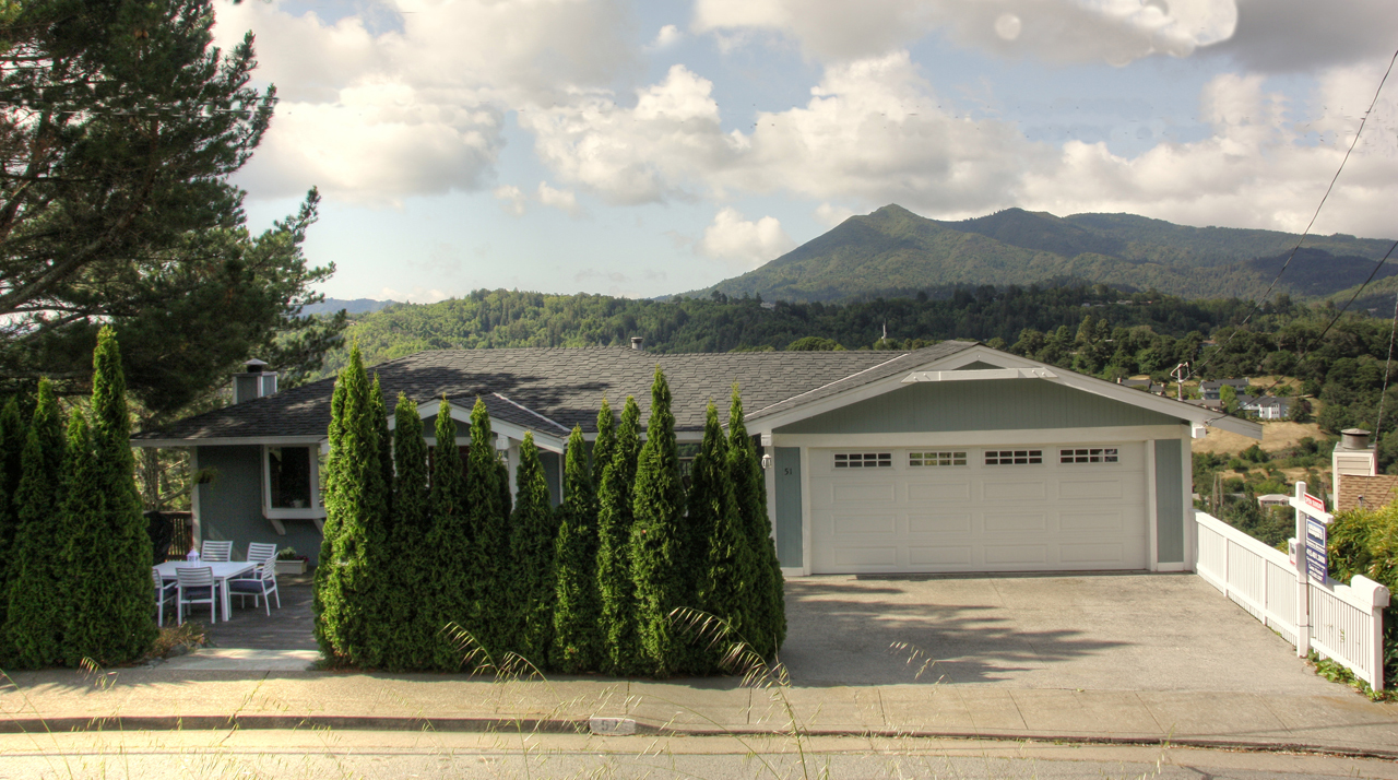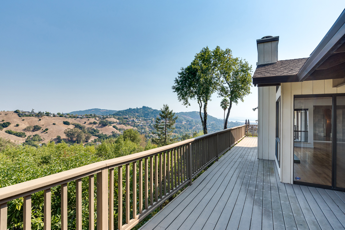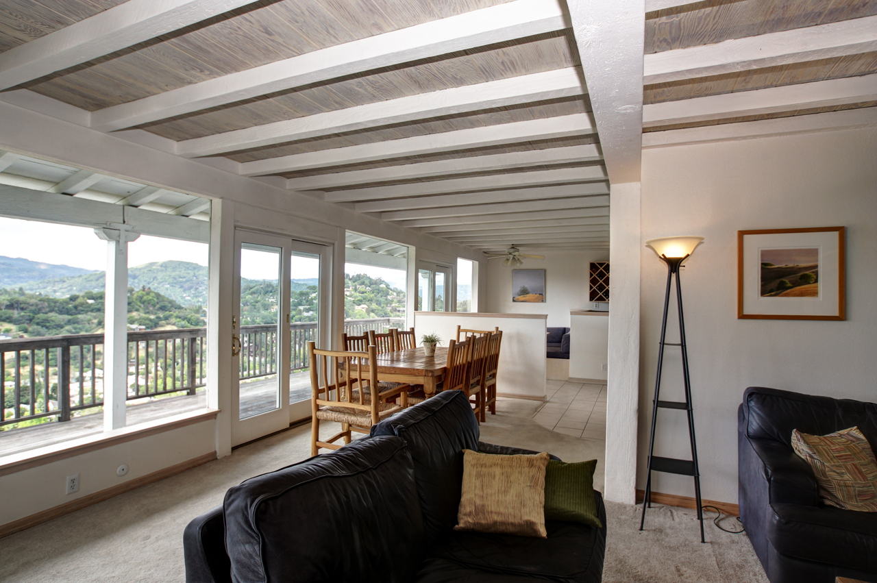 Gorgeous Mt. Tam and panoramic views from this 4 bedroom 2.5 bathroom home in Sun Valley school district. Open floor plan, and features an upper floor with remodeled granite kitchen and lovely built in breakfast area. The living room has a beam ceiling and stone fireplace. The front yard has a water feature and large entertaining deck; this and the two rear decks are brazilian hard wood. There is a large family room, a two car garage and lots of storage under the house. Sold under list price for $852,000. Click the link beneath the following pictures for full details.