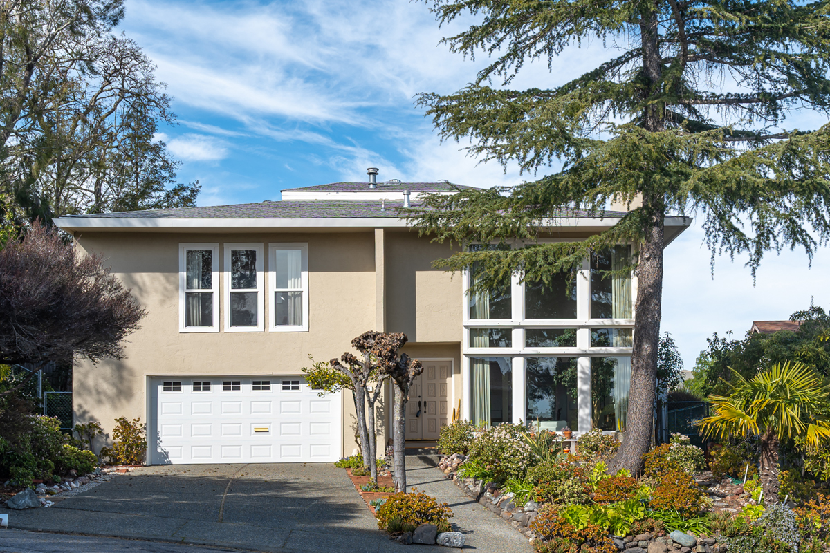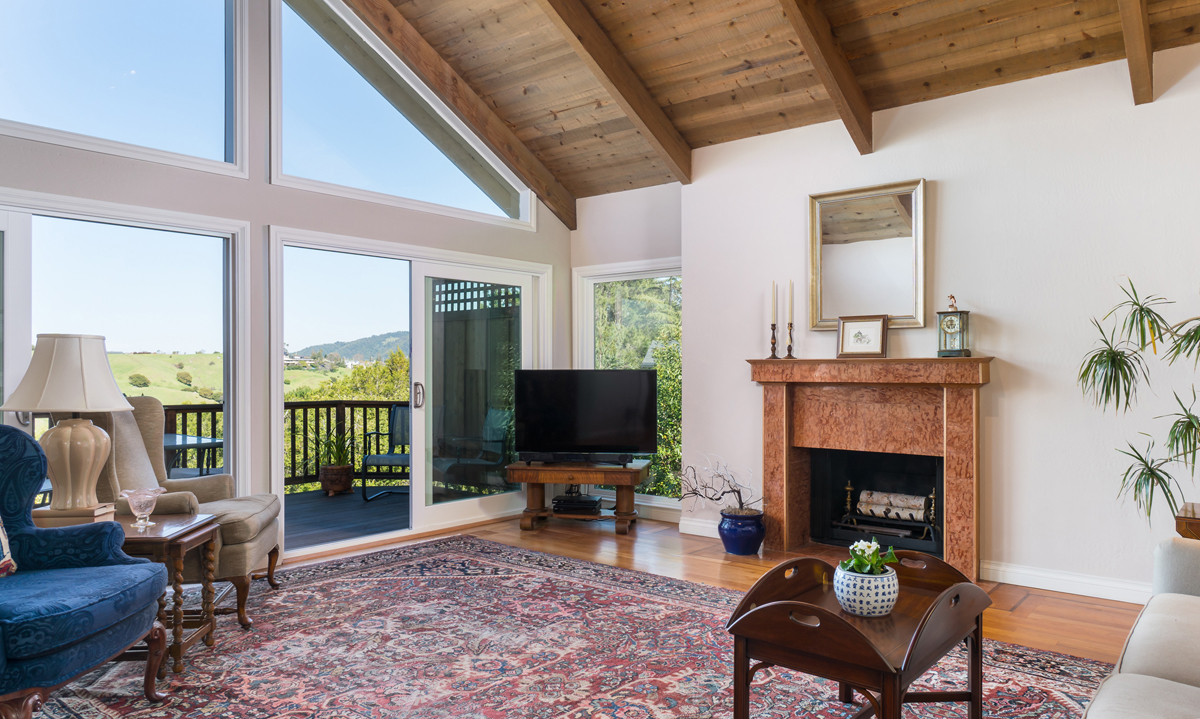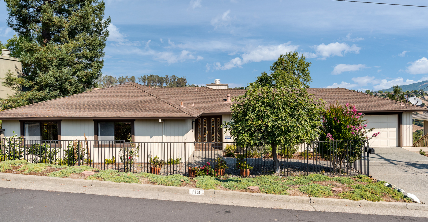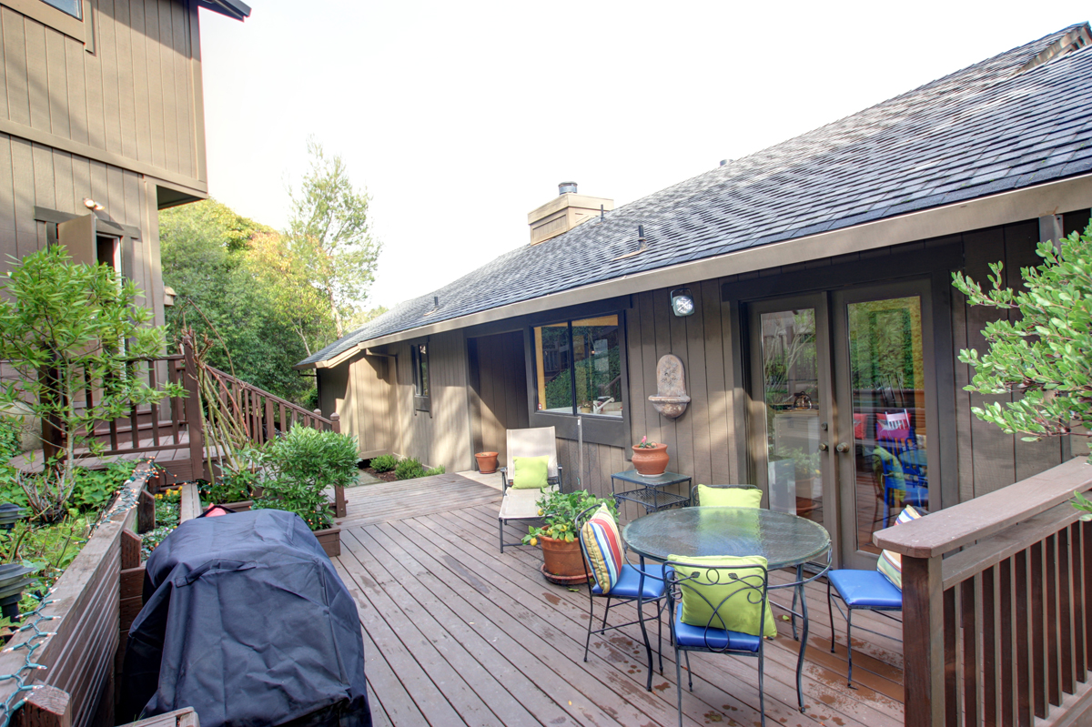 Gorgeous Mt. Tam and panoramic views from this 4 bedroom 2.5 bathroom home in Sun Valley school district. Open floor plan, and features an upper floor with remodeled granite kitchen and lovely built in breakfast area. The living room has a beam ceiling and stone fireplace. The front yard has a water feature and large entertaining deck; this and the two rear decks are brazilian hard wood. There is a large family room, a two car garage and lots of storage under the house. Sold under list price for $852,000. Click the link beneath the following pictures for full details.