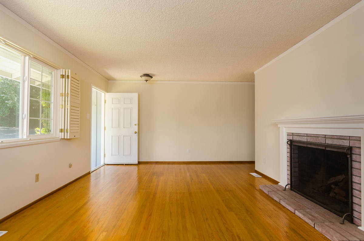 Living room has a large picture window, fireplace and gleaming original hardwood floors (and in most living areas).