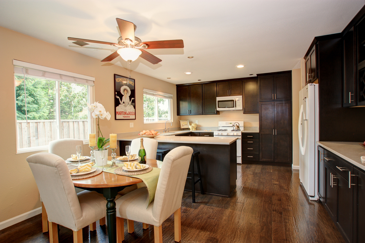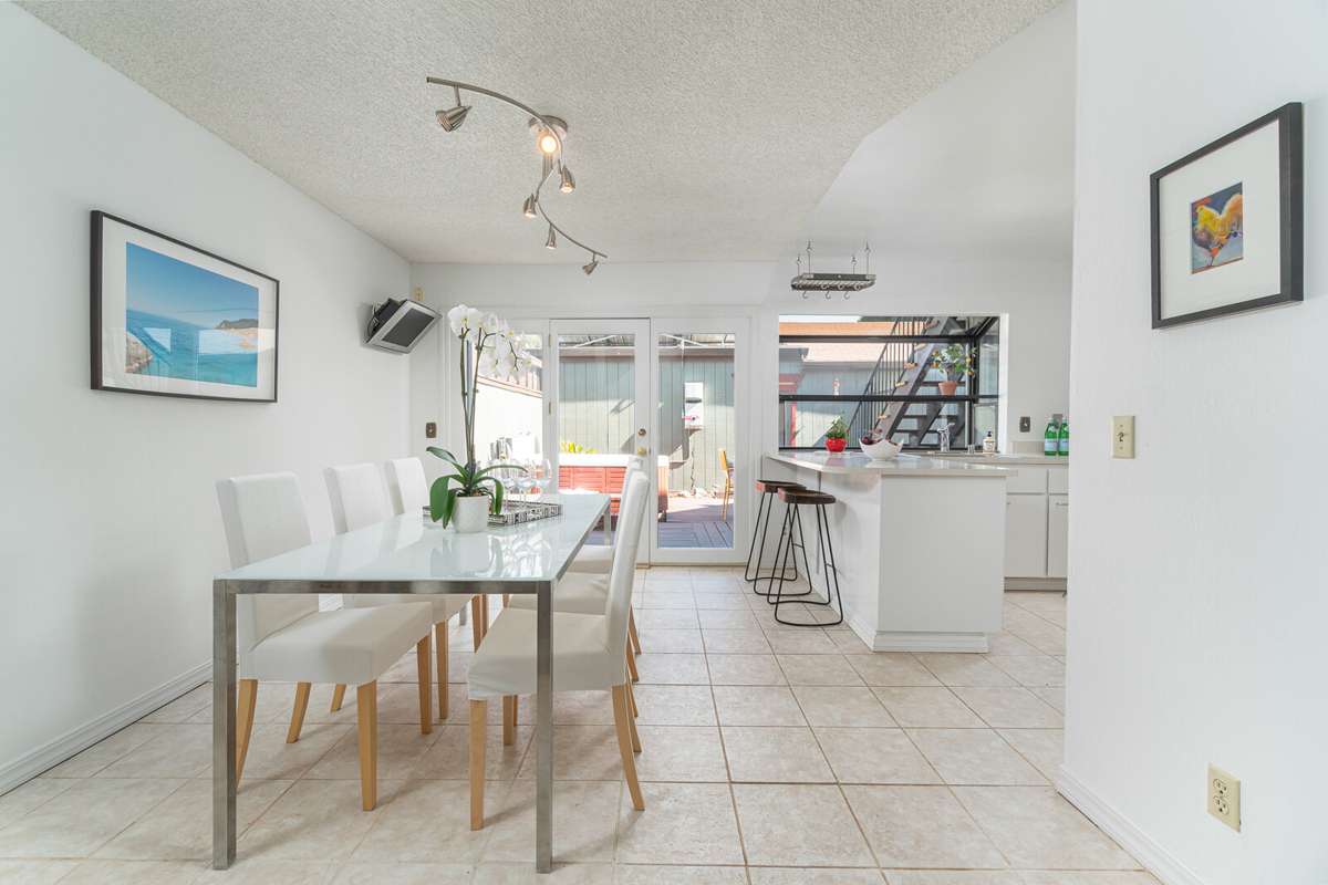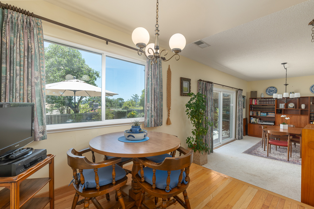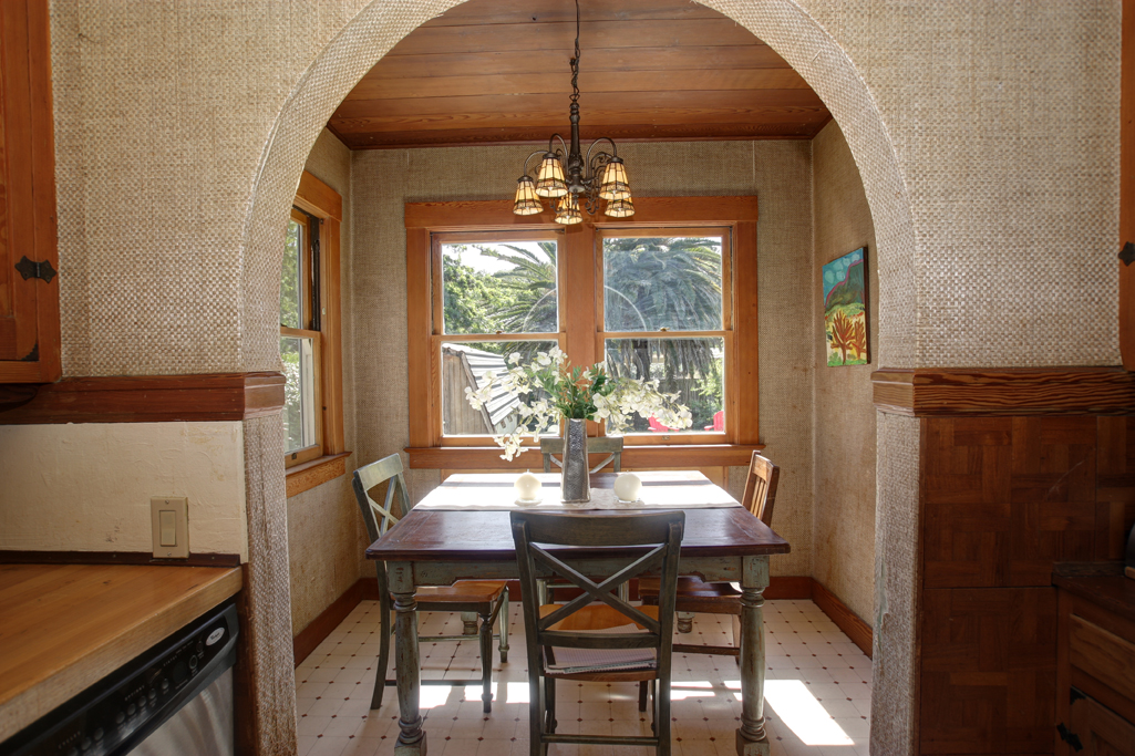Charming 2 bedroom home with remodeled kitchen including quartz counters and breakfast nook looking to backyard.