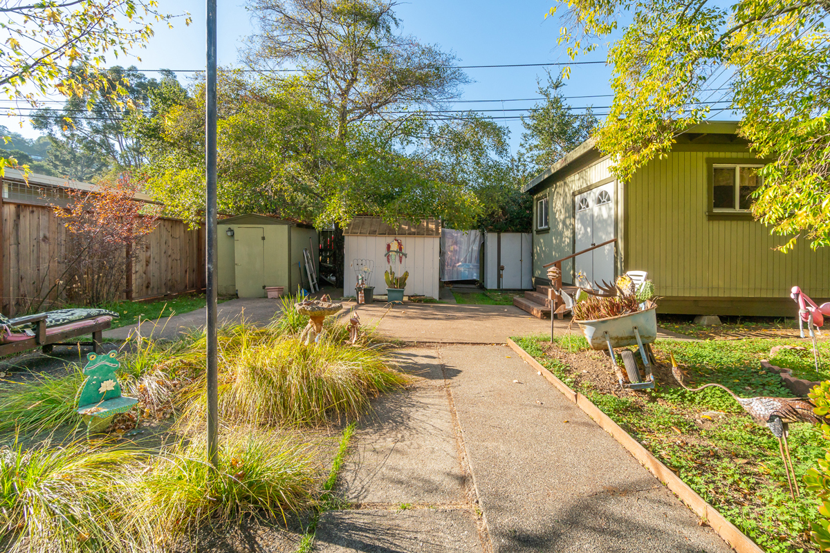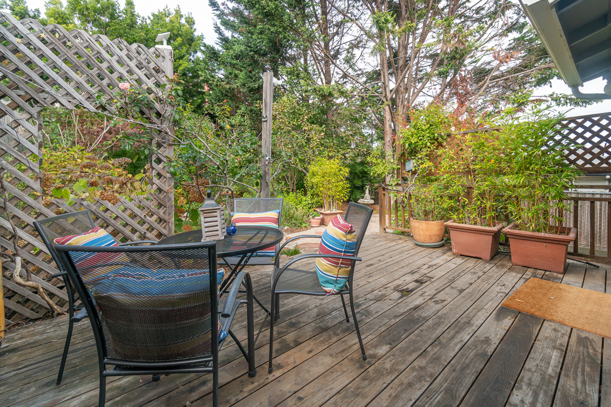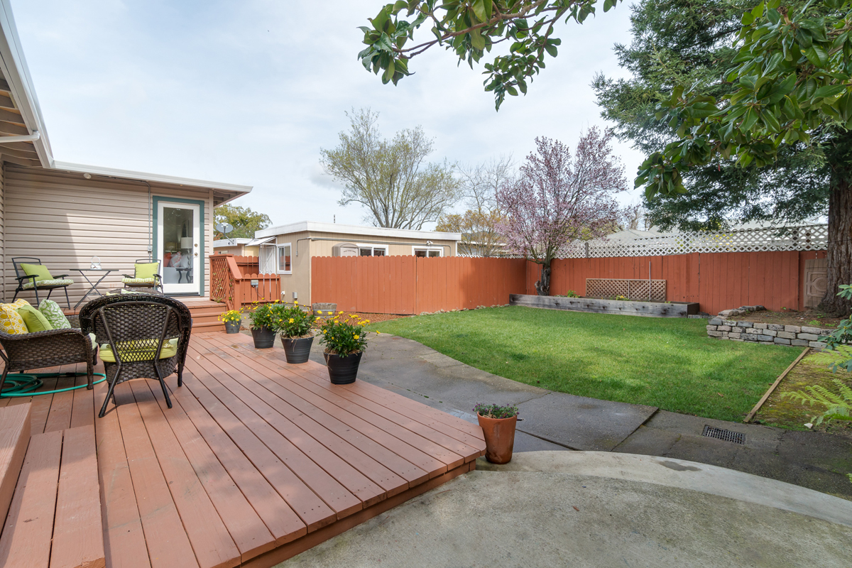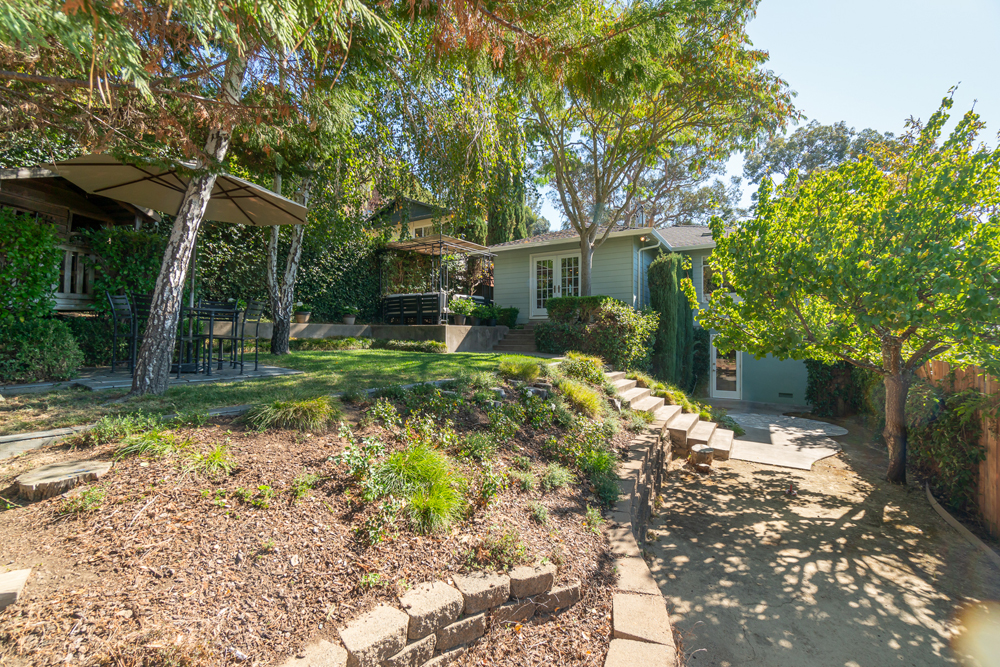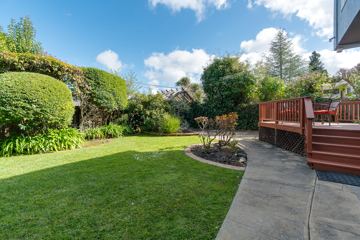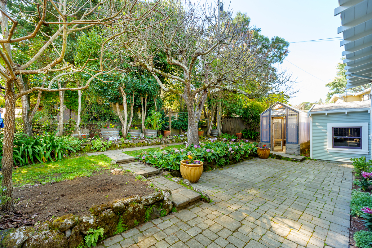 An adorable back yard with lovely deck to relax and entertain, fig, apple, lemon, orange and apricot trees, gorgeous magnolia, hydrangeas, roses and flowering shrubs - a true oasis! The neighborhood is wonderful - very close to town with all its amenities and easy an commute to Marin or the rest of the East Bay. Don't miss this one!