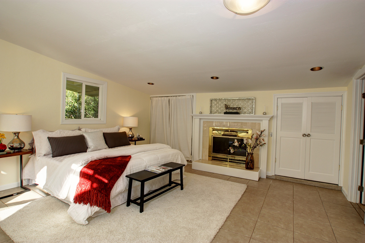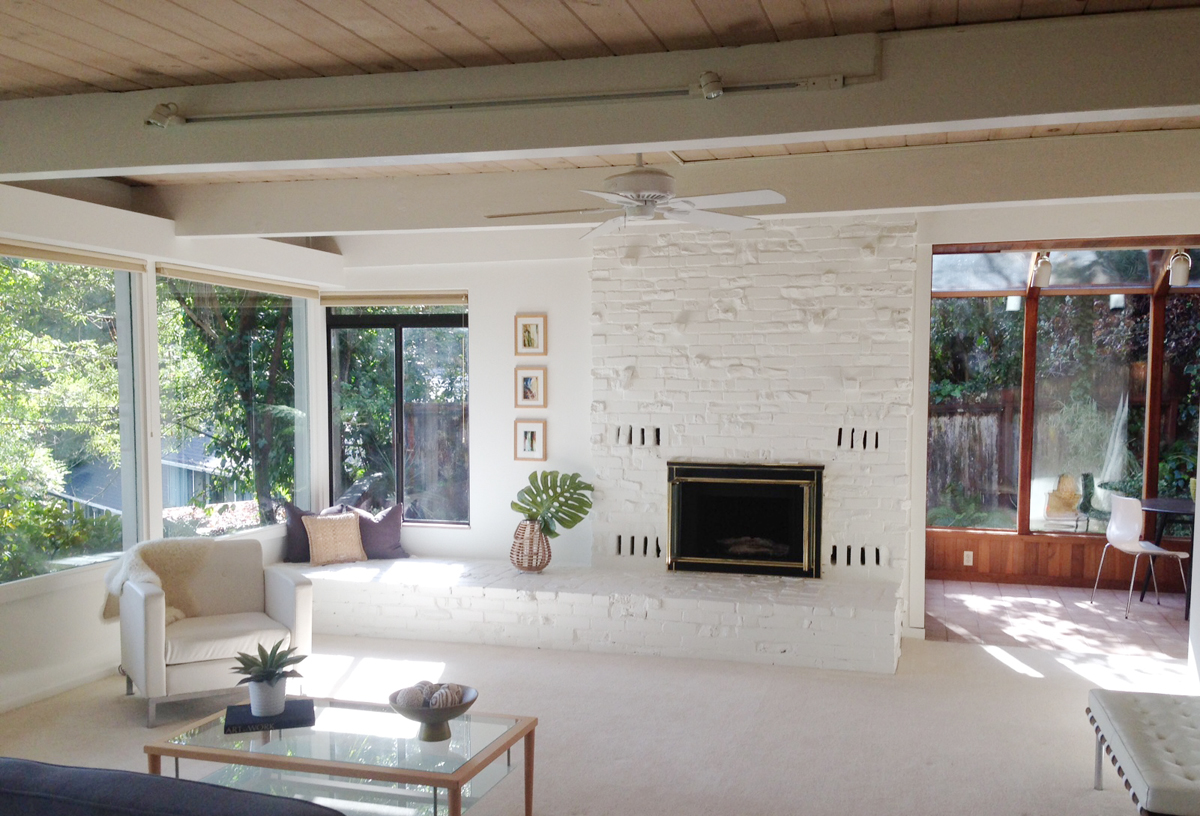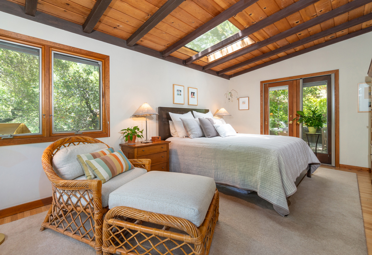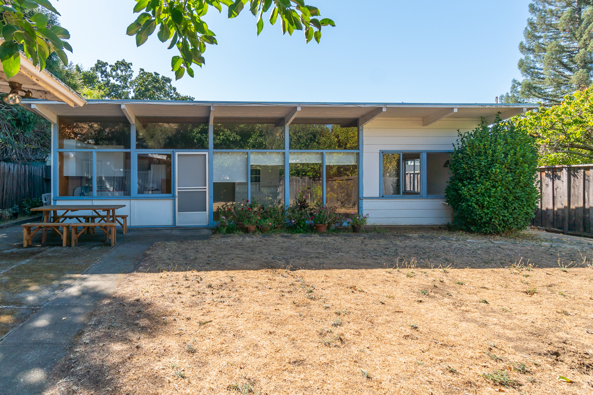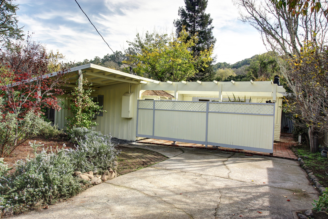 An enclosed entry courtyard welcomes you to this lovely three bedroom two bedroom two bath private contemporary single level home with a light and airy floor plan. The living room has beamed ceilings, skylight and a fireplace. The kitchen with stainless stell appliances has a breakfast area. There is an additional office nook down the hallway. The versatile front bedroom has a private bathroom and second fireplace and can be used either as a master suite or as a family room. The second bedroom is large, has a office/study space, and French doors leading to a rear patio. The large backyard has tons of potential for gardening and/or children's play, as well as a storage shed. This is a wonderful neighborhood close to Memorial Park, Red Hill shopping, desirable schools and great hiking trails on your doorstep. Closed at $848,000 with 3 offers. Click the link beneath the following pictures for full details.