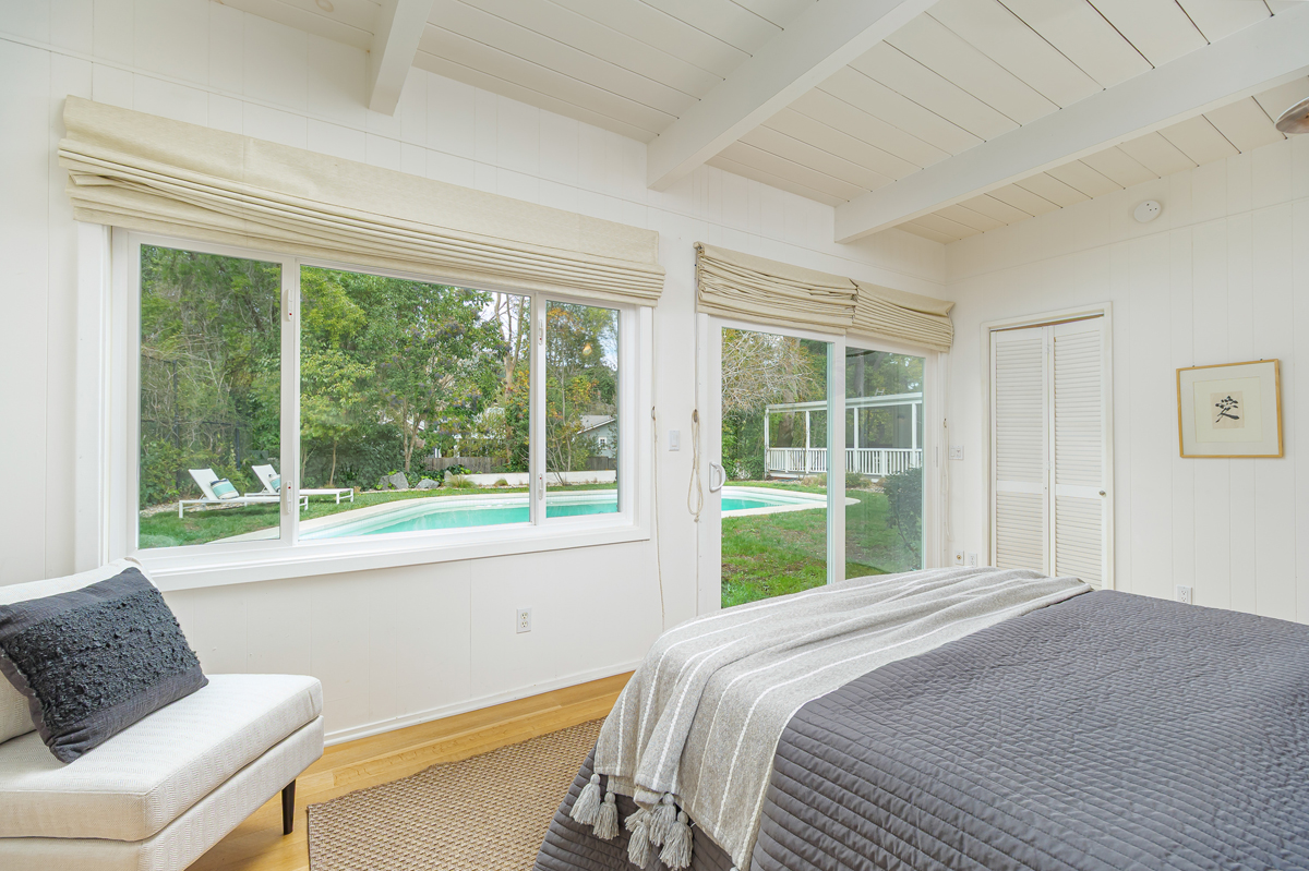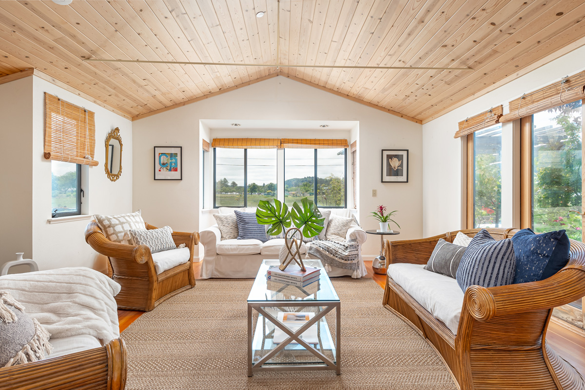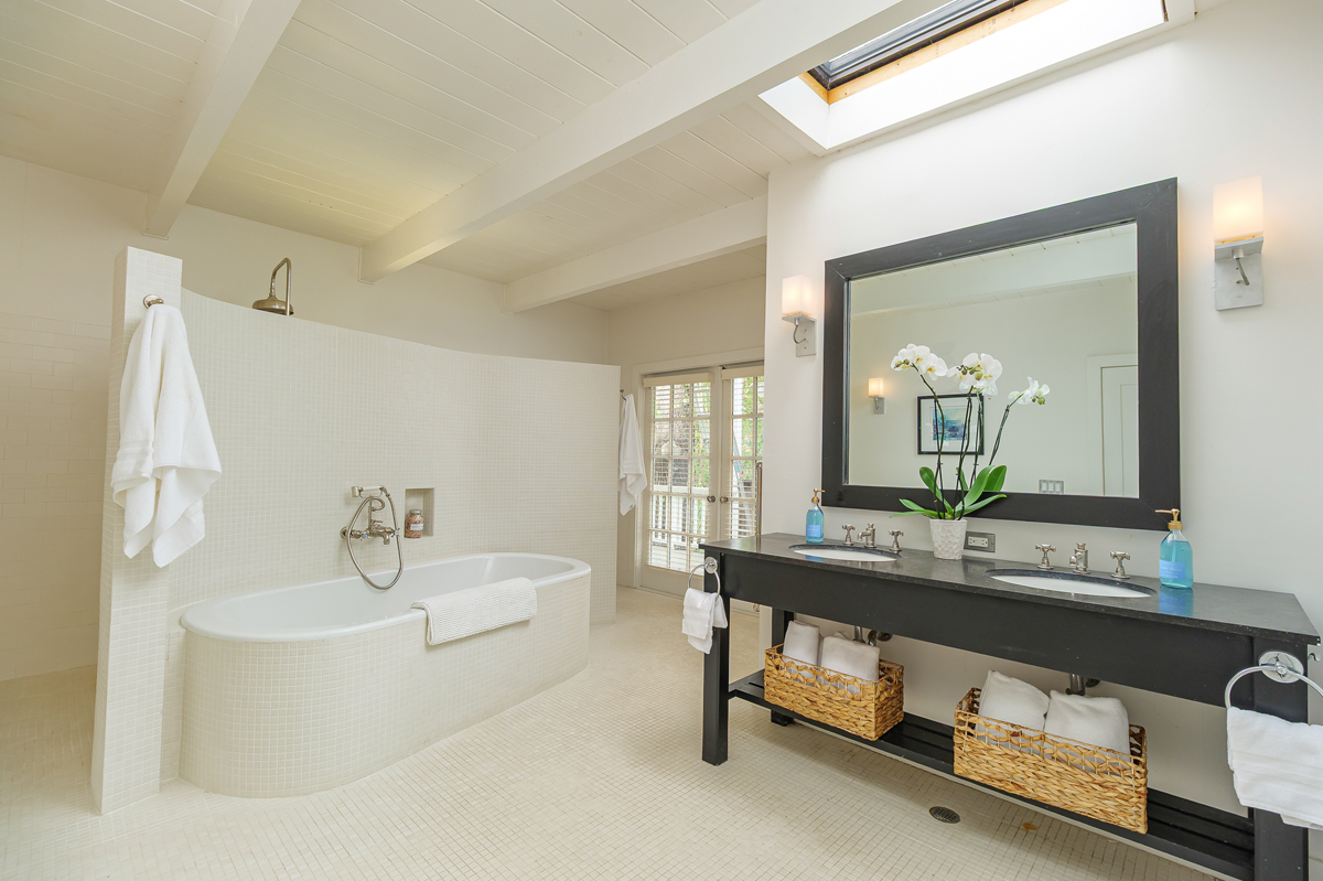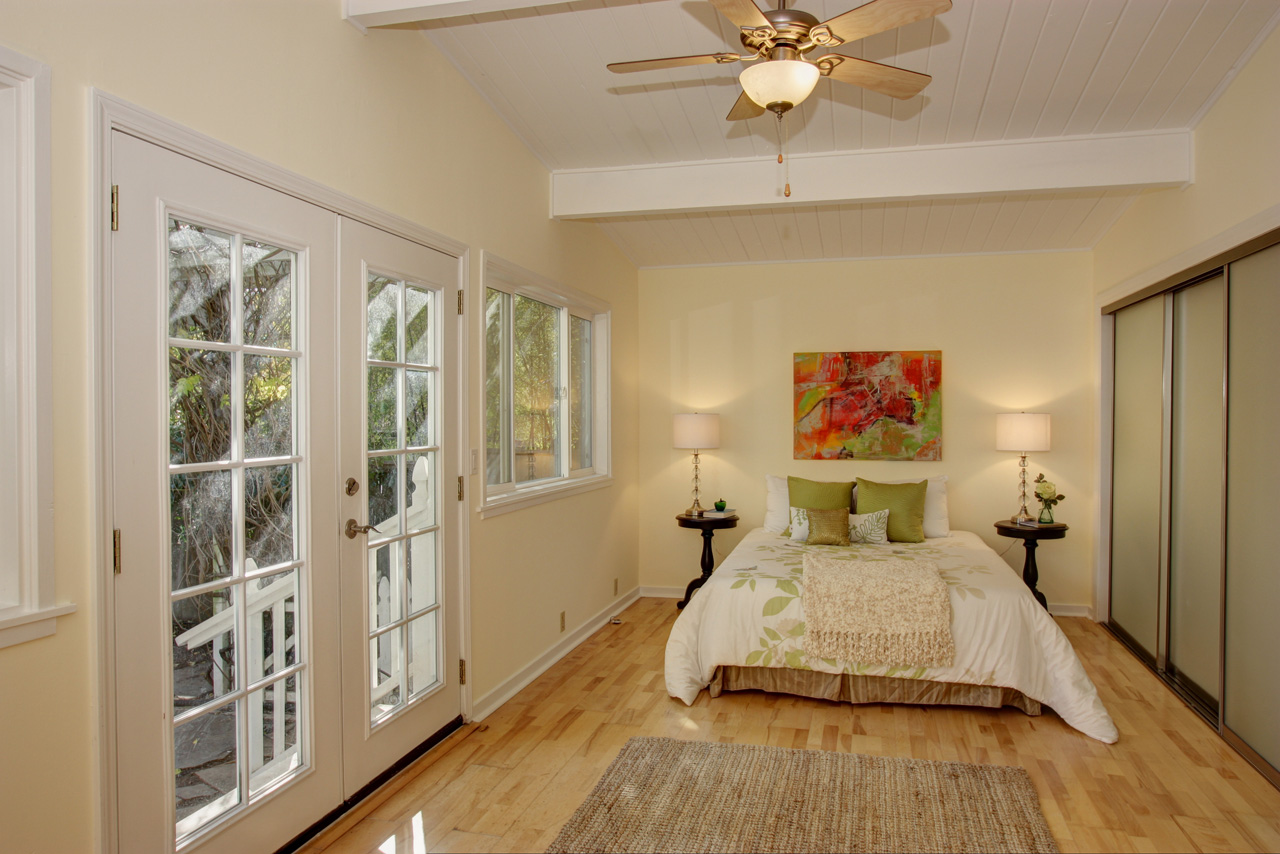 Three bedrooms and two baths plus outdoor shower, office/studio and meditation room.