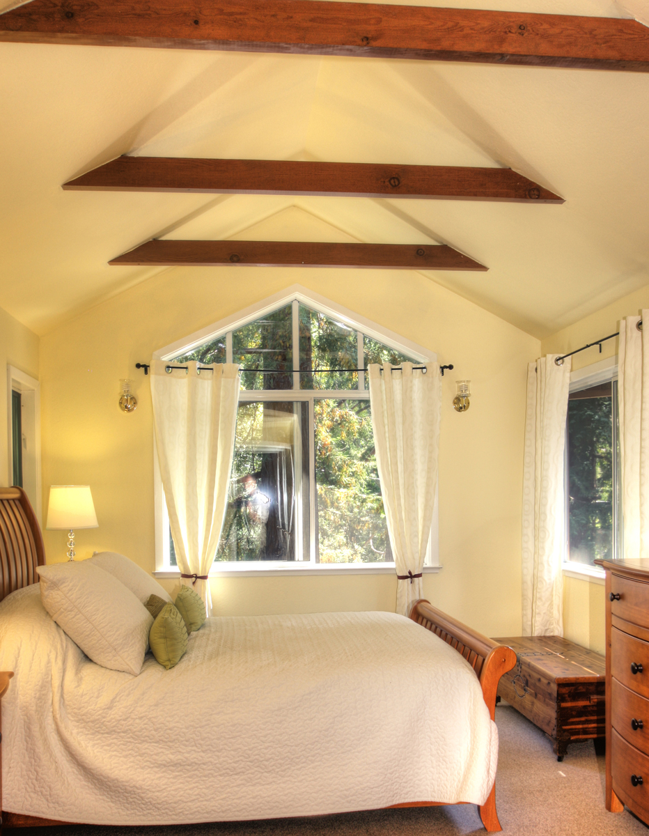 The upper level has two ensuite bedrooms with vaulted ceilings.
